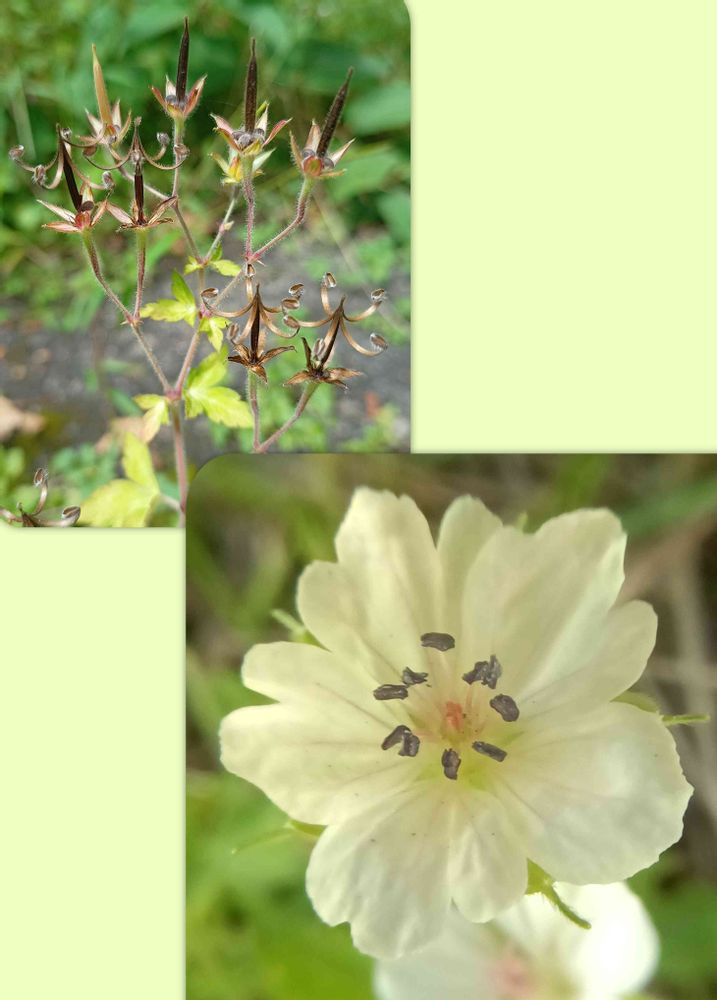 このゲンノショウコの花色はクリーム色で花弁がフリフリ😀