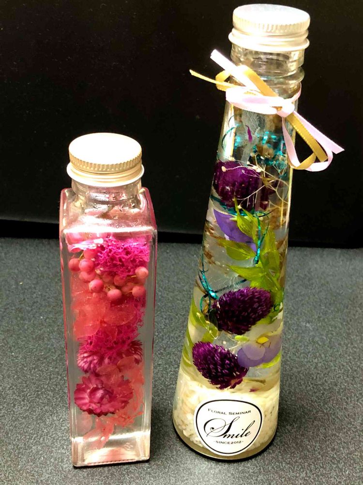 学んだ事は、瓶にオイルを入れる前に、完璧な形を作る事。入れてからは位置移動ができません😱ありがとうございます。嬉しいです😆💕