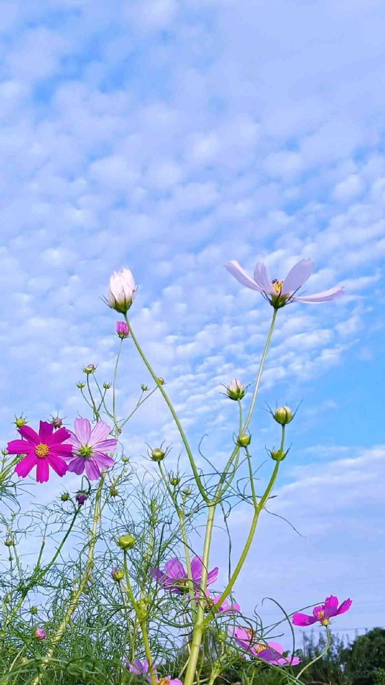 ウロコ雲☁️に向かって咲いてるみたいなコスモス🌸キレイに撮れましたね〜😊
