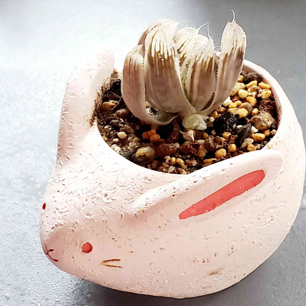 小さなうさぎ鉢に植えてたハオルチアさんに子株が👶💖