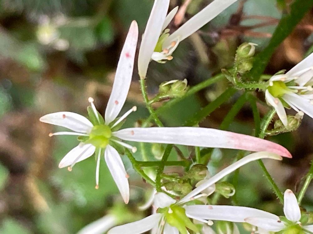 おはようございます😃ヤクシマダイモンジソウ🤍箱根湿性花園にて。9/23pic。初めまして。お花の名前とおりのかたち、不思議に可愛いです👍😃🎶