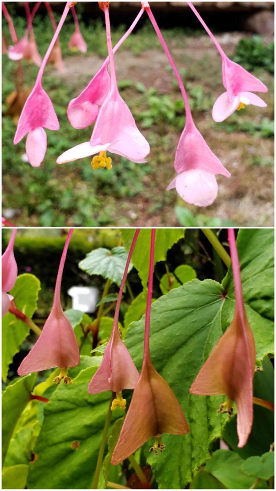 シュウカイドウの雌花がいよいよ三角錐に変化してきた🌺🔺🔺🔺🌿