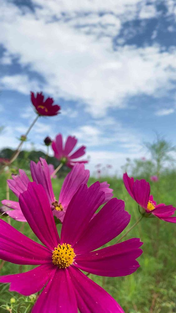 花のアップと空と草原が、とってもいい感じです。(*^_^*)