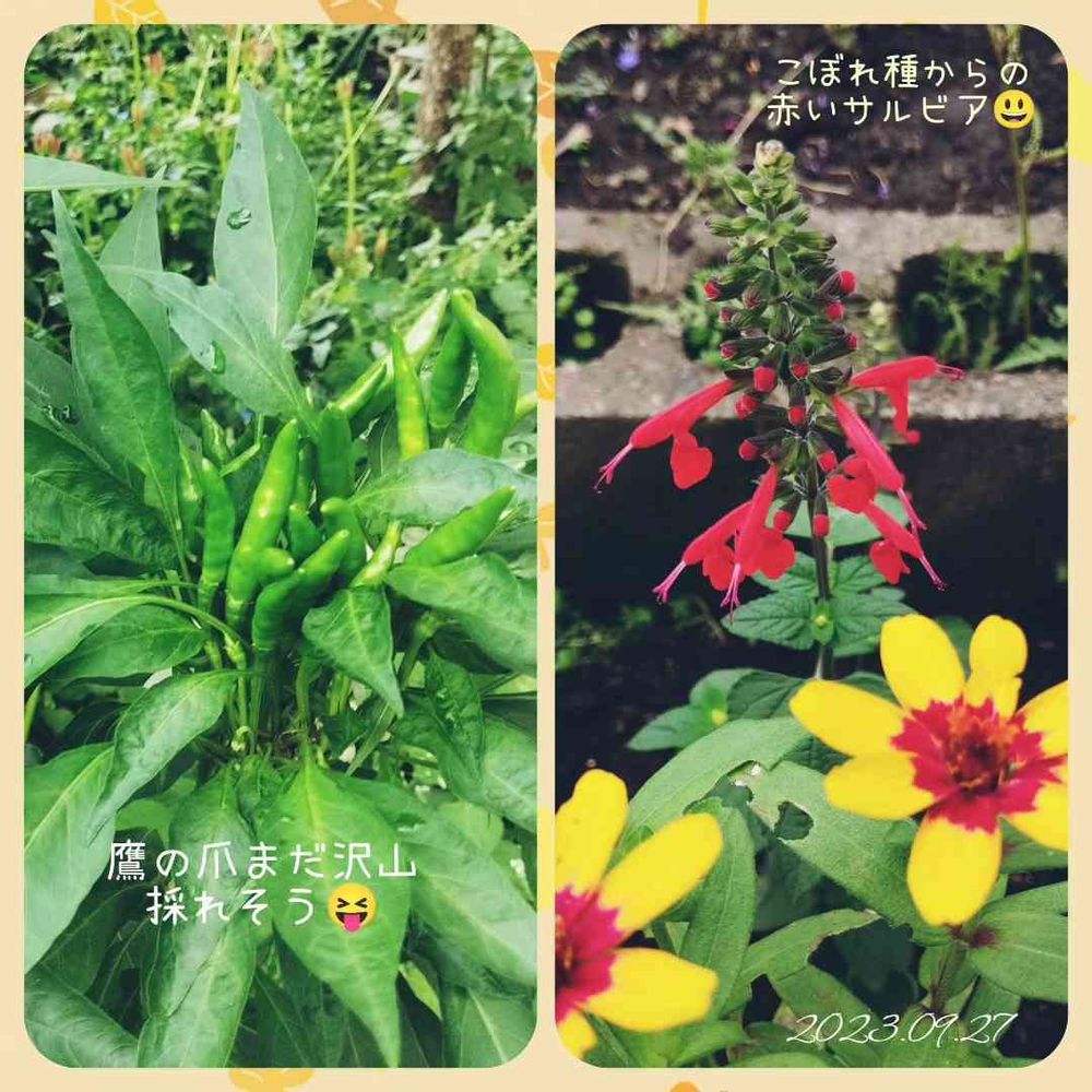 いつもはもっと出てくる赤いサルビア❤️今年はまだ一本しか咲いてない。