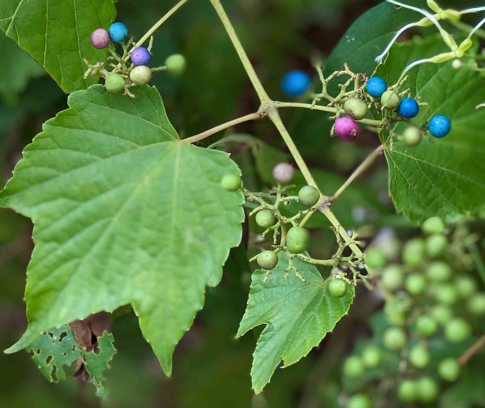 今日の散歩道で👀見付けた可愛い色の野ブドウです🥰