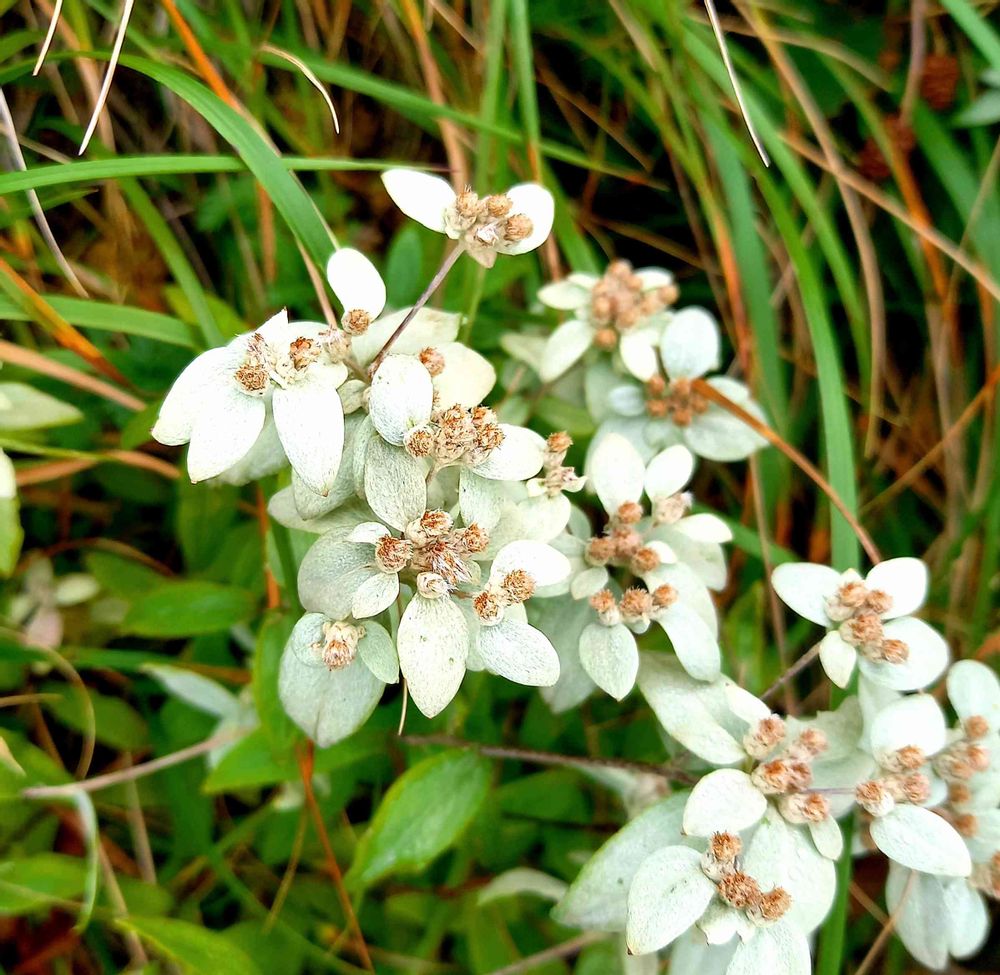 コウスユキソウ(小薄雪草)キク科 7~8月山地の岩の隙間や乾いた礫地に生える高さ10cmほどの多年草。葉は、へら形で長さ17mmほど。綿毛があり全体に白っぽく見える。茎先に灰白色の頭花をつける。(*^_^*)