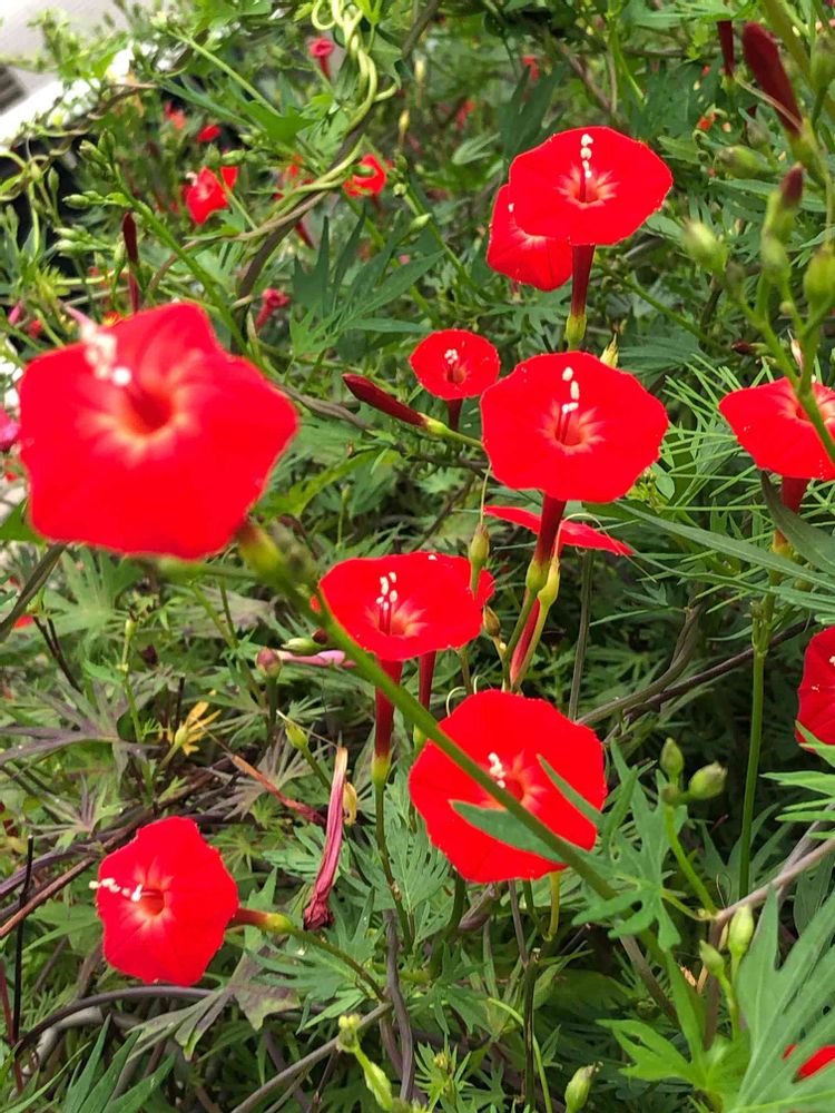 散歩の途中 真っ赤なお花に釘付けになりました。今迄見たルコウソウより一回り大きな花でインパクトがありました。