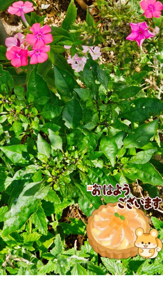 フロックスサンとバーベナサンの間から、零れ種のブラックパールサンが出て来ました🤗💓