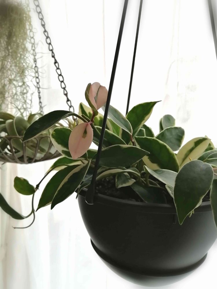 ホヤカルノーサが薄ピンクのかわいい葉っぱを出しています🌿.∘