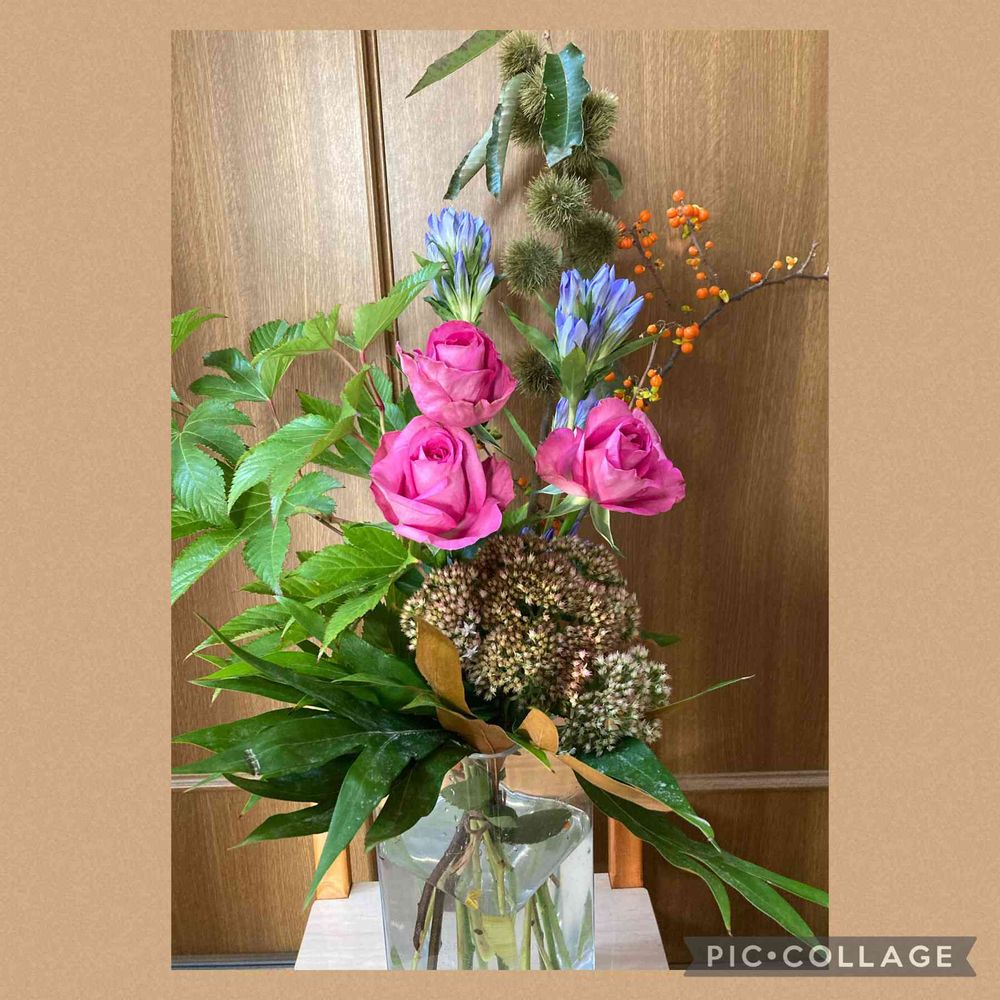 秋らしいお花に薔薇が優しく、気持ちを明るくしてくれてますね💝