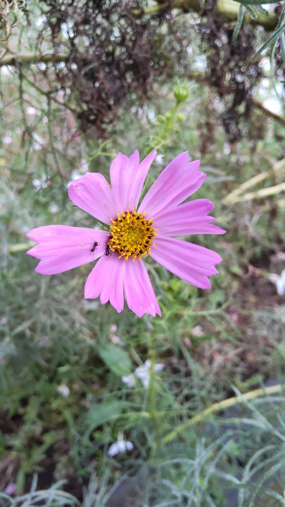 こぼれ種から何本も生えてきたコスモスですが、なかなか花が咲きませんでした。