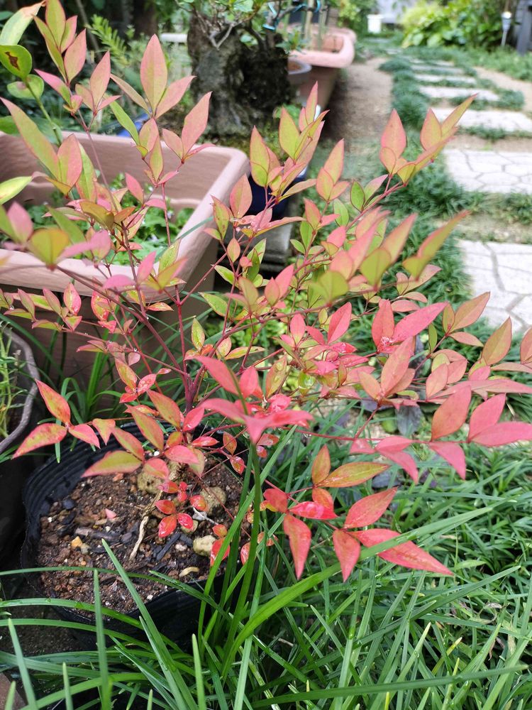 秋空の下秋らしく紅葉したナンテンを見つけました!😃🌈