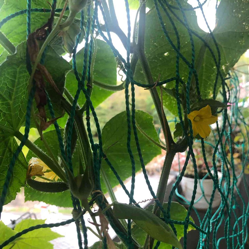 このきゅうりは、スーパーで買ったきゅうりの種をほじりました、ではなくて、😅ちゃんと苗の形で買った物なので、収穫が1本では寂しい。
