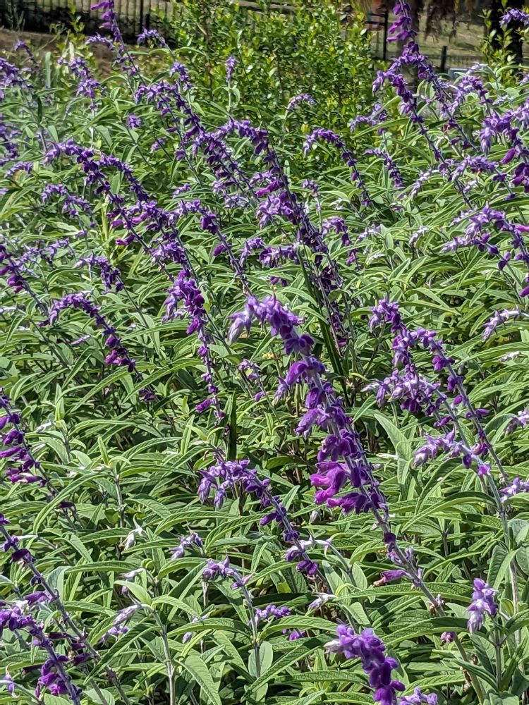紫💜の花とベルベットの様な葉っぱが、秋の花壇でひときわ目を引きます。