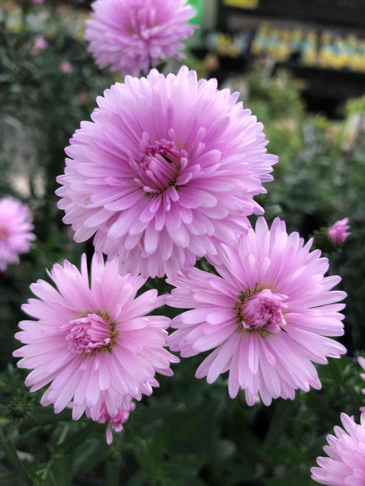 夕暮れ時、ホームセンターにて「宿根アスタービクトリア」をパチリ!📷🌸🌿😊😄🤗🌇👌