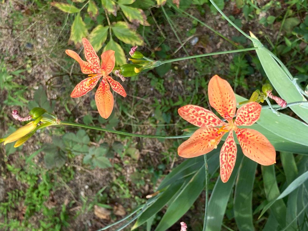 回答ありがとうございます😊ヒオウギですね。アヤメ科アヤメ属のお花。ユリとは全然遠いですね😅花色がかわいいお花でした🤗