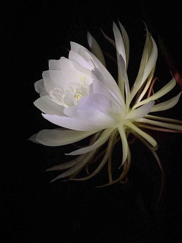 自然大好き派😘、兼園芸もやっています派です。昨夜開花しました。なんとか花だけを浮かび上がらせて撮りました😊🤗。