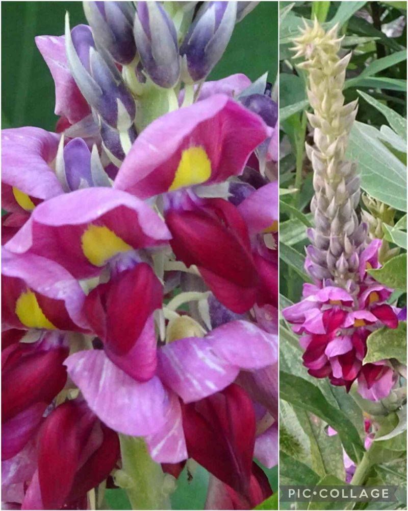 クズのお花、花びらの内と外、ツートンカラー、大きなシベの黄色、upで見るととても美しいですね。