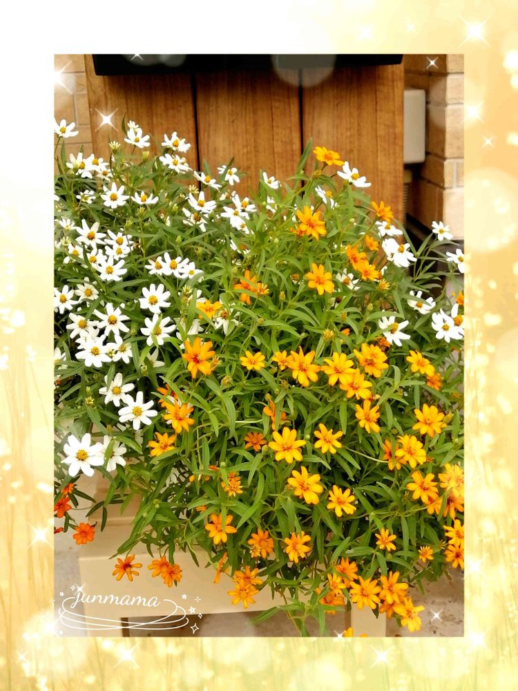junmamaさんのジニア,ジニア・リネアリス(細葉百日草),プランターの投稿画像