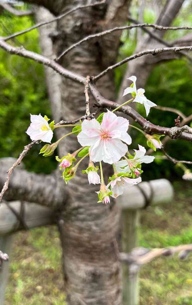 春に咲くサクラよりも小さく、断続的にポツポツと咲くので、満開って感じにはならないです。