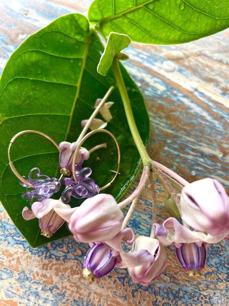 進級されてお免状をお出しした生徒さんから、クラウンフラワーのイヤリングのプレゼントを頂きました☺️グラスで出来ているハワイ産のイヤリング💓庭にあった本物とそっくりです🥰🌴マハロ〜🌴