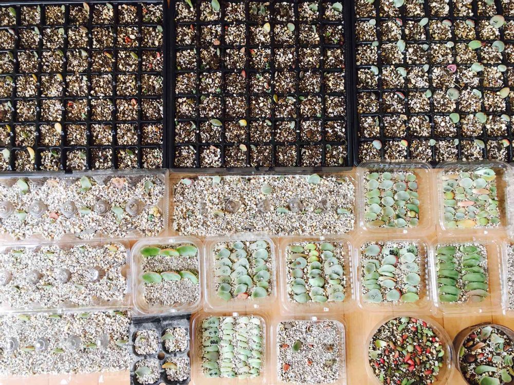 セダム(虹の玉)セダム(乙女心)グラプトペラタム(ブロンズ姫)カランコエ(月兎耳)ハオルチア、セダム(銘月)