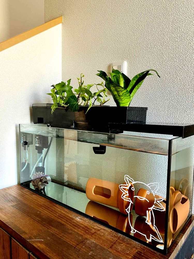 現在、二代目となるウーパールーパーを別水槽で育成中。