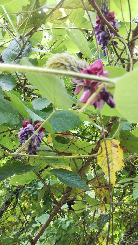 家の近くのは、電柱を這い上がって上の方で咲いていたり。
