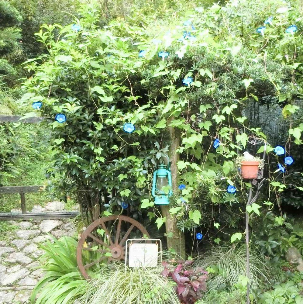 今年は槙の木にアサガオを誘引してみたけど、日当たりが良くないせいかパラパラ咲きだった😅