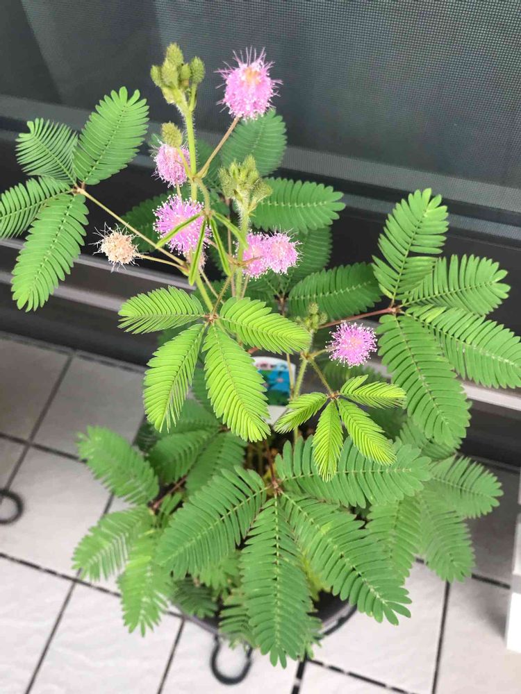 オジギソウのポンポンのお花可愛いですよね〜💕💕触るとふわふわです🤭