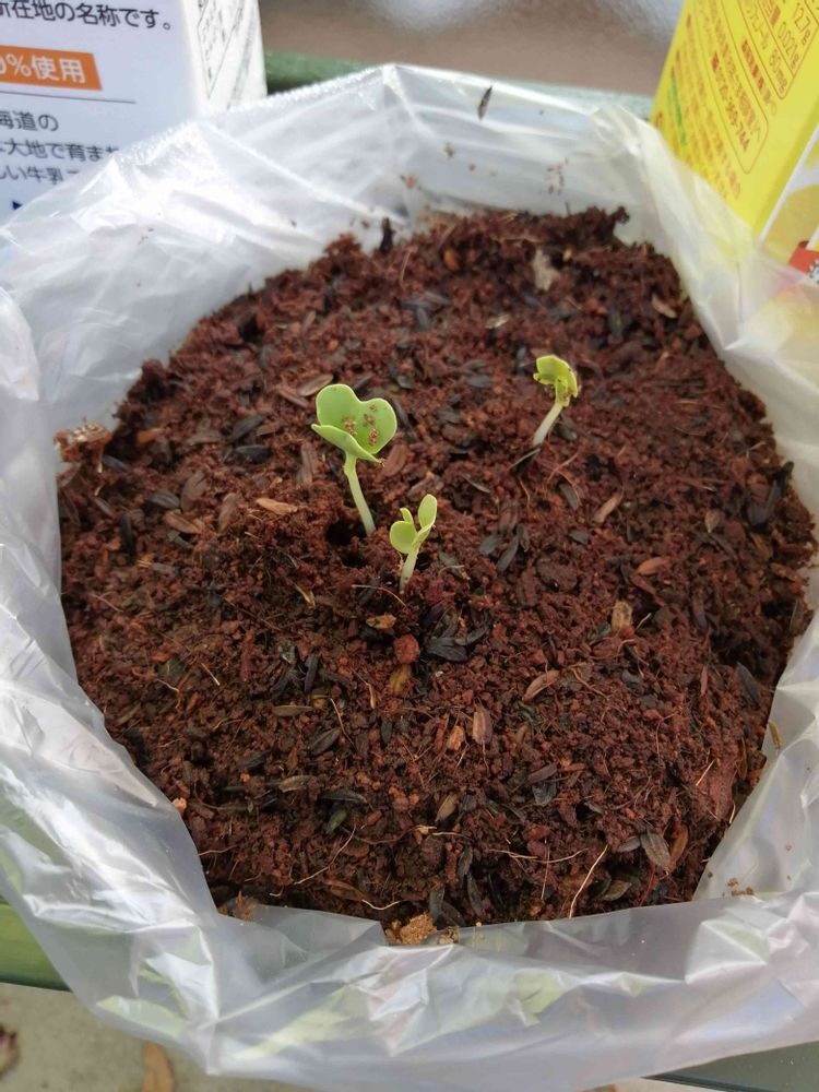 3粒まいて3つとも発芽したから、もう1袋作ろうと思います(1袋1本に間引くので)