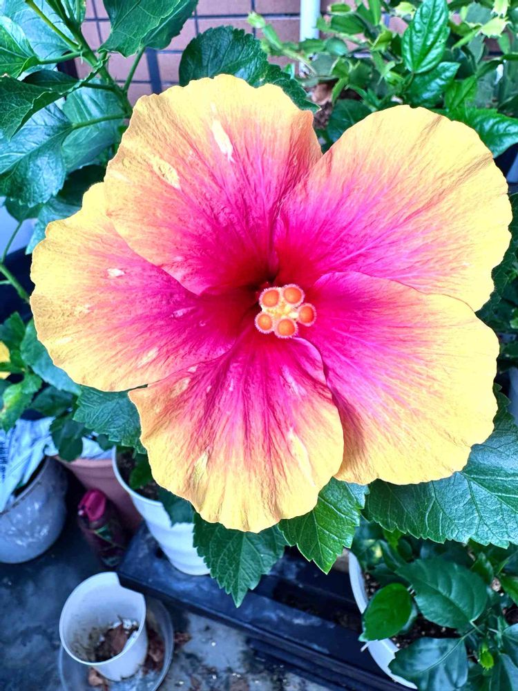 今年初めて、やっーとハイビスカス ミセス・ユミが咲きました❣️