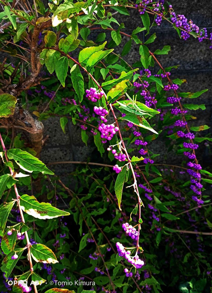 散歩道(京都丹波亀岡)に紫式部の実が、たわわに、、、