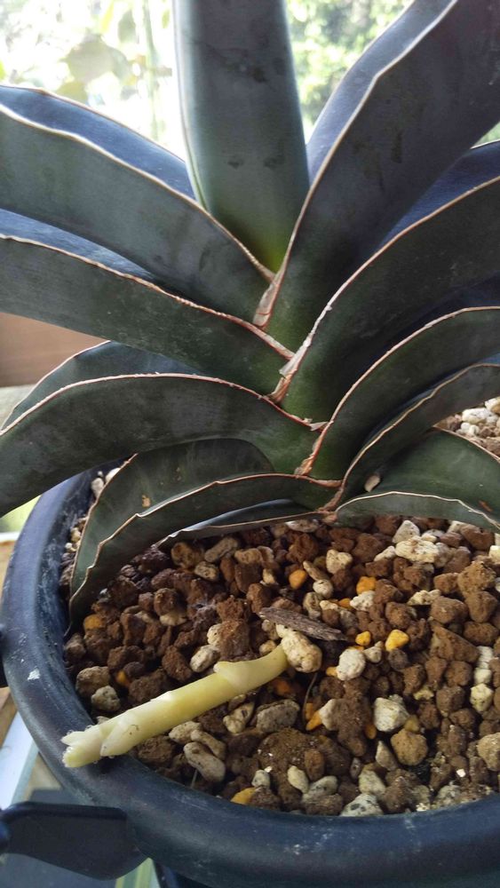 サンスベリアと言えば地下茎がプラ鉢を変形させるほどガチムチだけど、