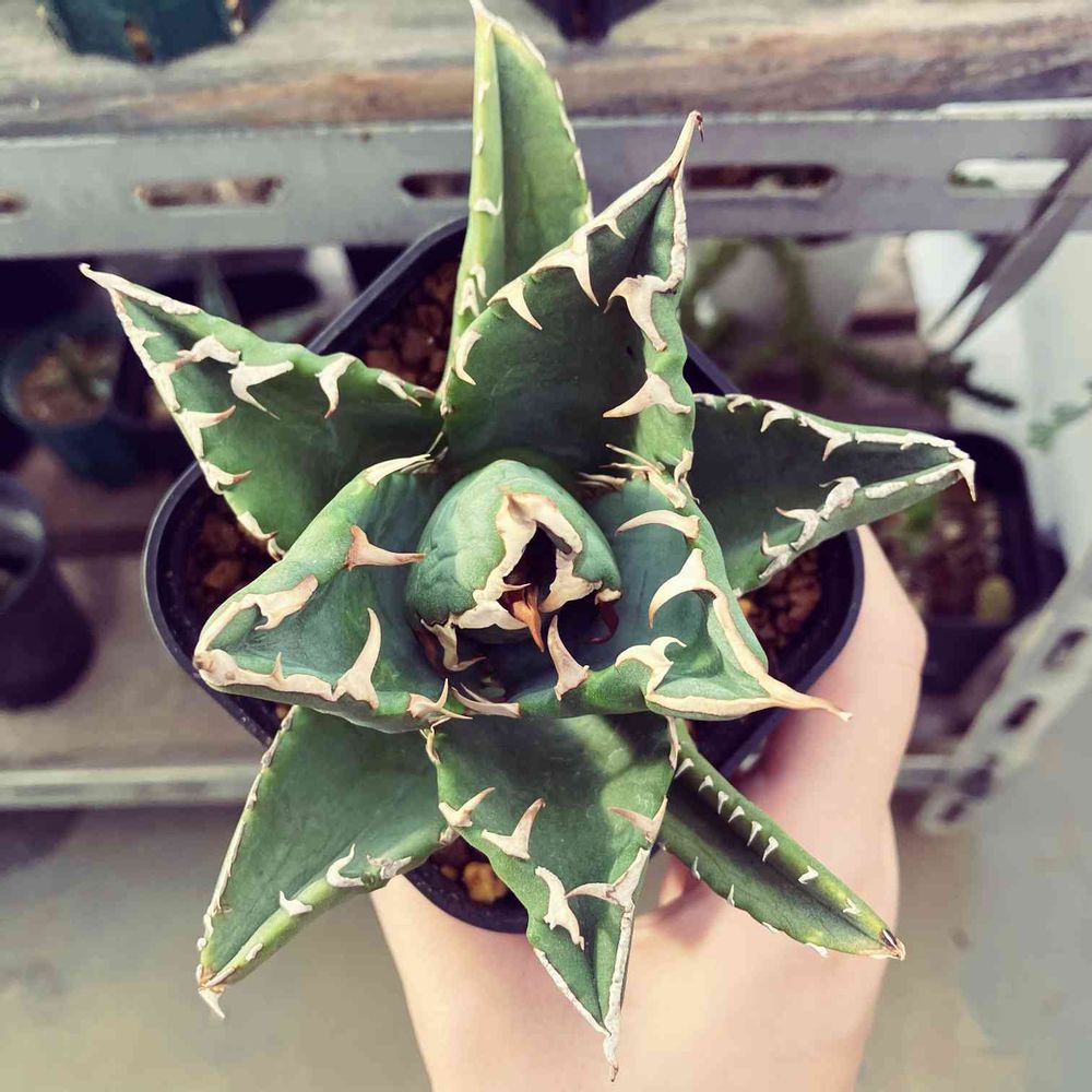 2017年より多肉植物にハマり中。 ヘンテコな形大好き。 普及種からレアなものまで心に刺さった植物を収集中。 アガベは丸っこいボール型や低重心タイプが好き 多肉植物に癒される日々。