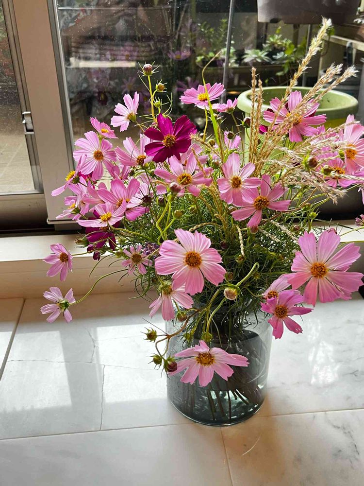 笠間の栗祭りに行った帰りに寄った道の駅で買った秋桜とススキ。