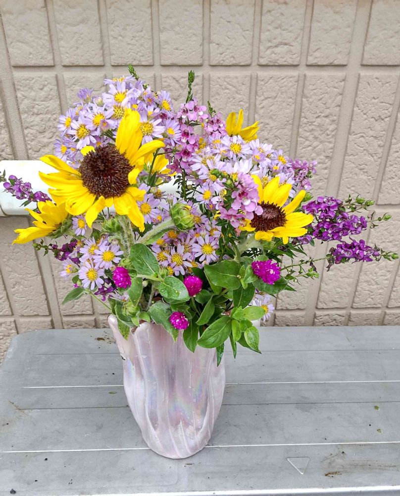 お隣りさんから~ひまわり頂き、生けてみました。😃☺️💮
