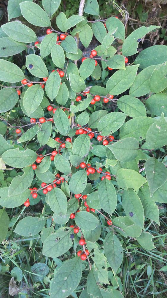 ウメモドキ時々投稿で見ていましたが、初めて赤い実が主人の故郷で見て、なんだろうと思いぐーぐーってみたらウメモドキと出ました。