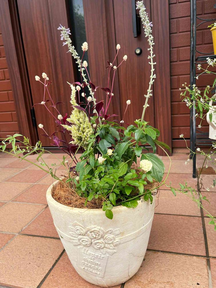 コノハナさんで予約していたポポラスを取りに行った時に、グリーンアイスとセロシア、サルビアをお迎えしてその時に「そのまま寄せ植え出来そう!」と言われて家にあったジャスミンとセンニチコウを入れて寄せ植えしてみました🤭