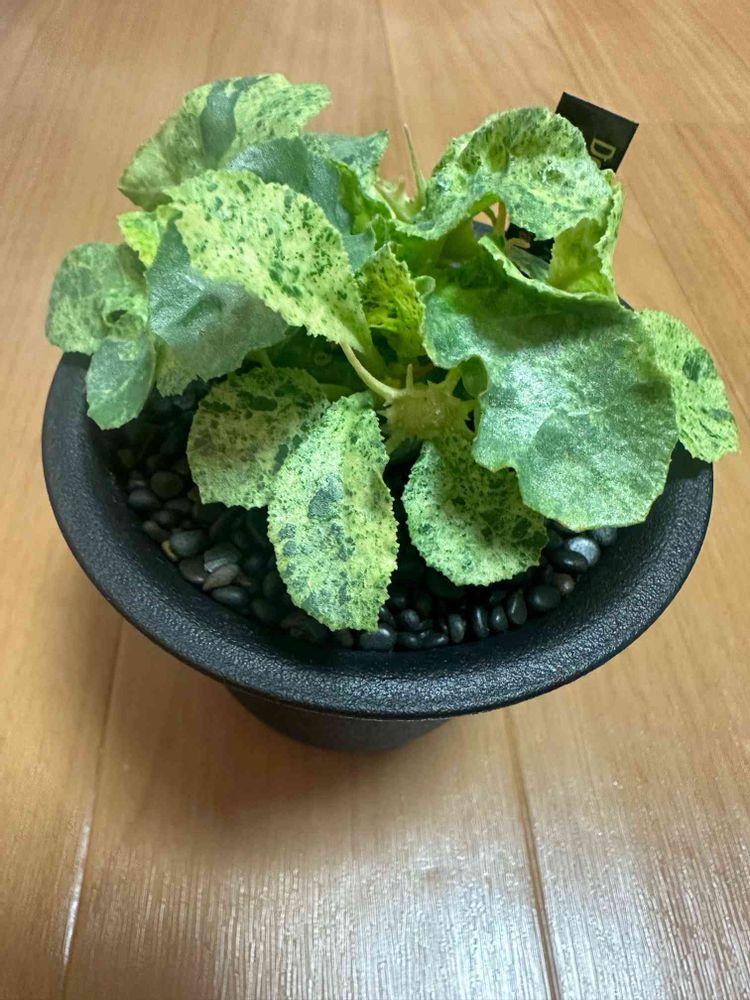 お店の人がタネ巻いて、そっから出てきた斑入りなんだって。その中でも斑のしっかり入った株だったから値段をつけあぐねてたって。