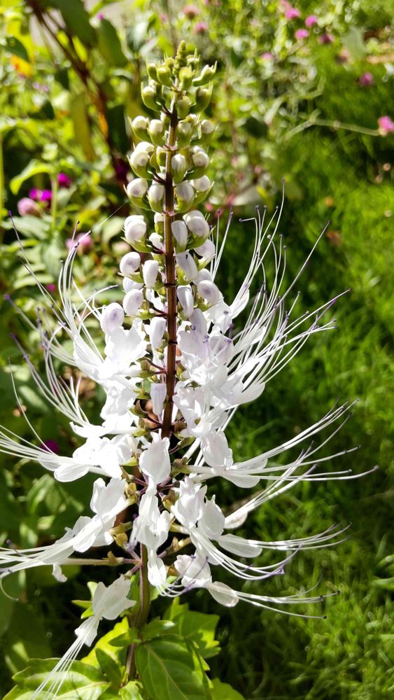 庭で咲いてるネコノヒゲ、ヒゲ(蕊)の先が💙💜に成ってて、可愛いけど見えるかな⁉️