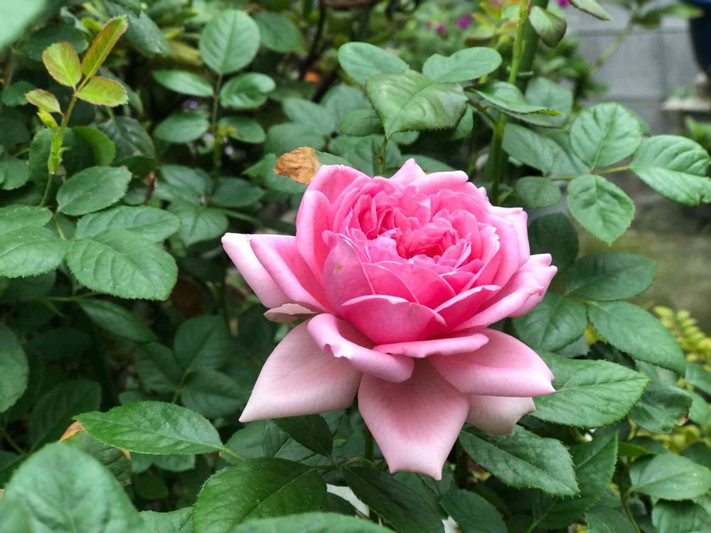 ローズポンパドール 昨日からかなり開きました❣️いい香り〜❤️色合いも濃いピンクで華やかです。プレゼントしてくれた親友に感謝😊