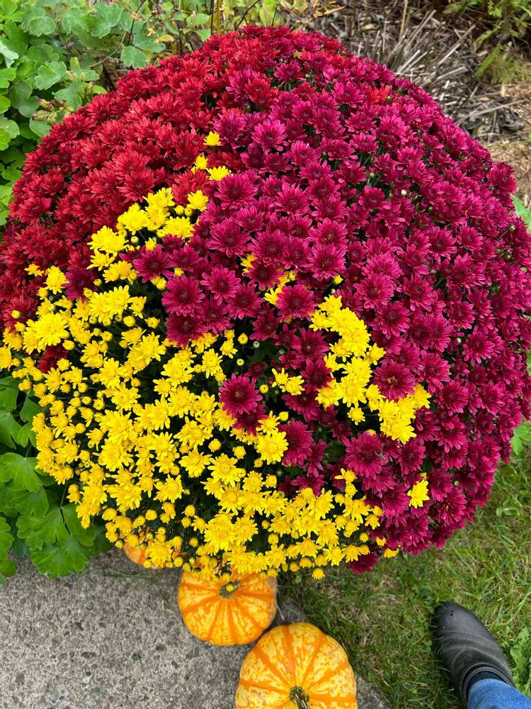 どうやったらこんなにまんまるにお花をを咲かせられるんでしょうね〜。自分で鉢に入れて育てても、こんな風にはなりませんね😆🌸