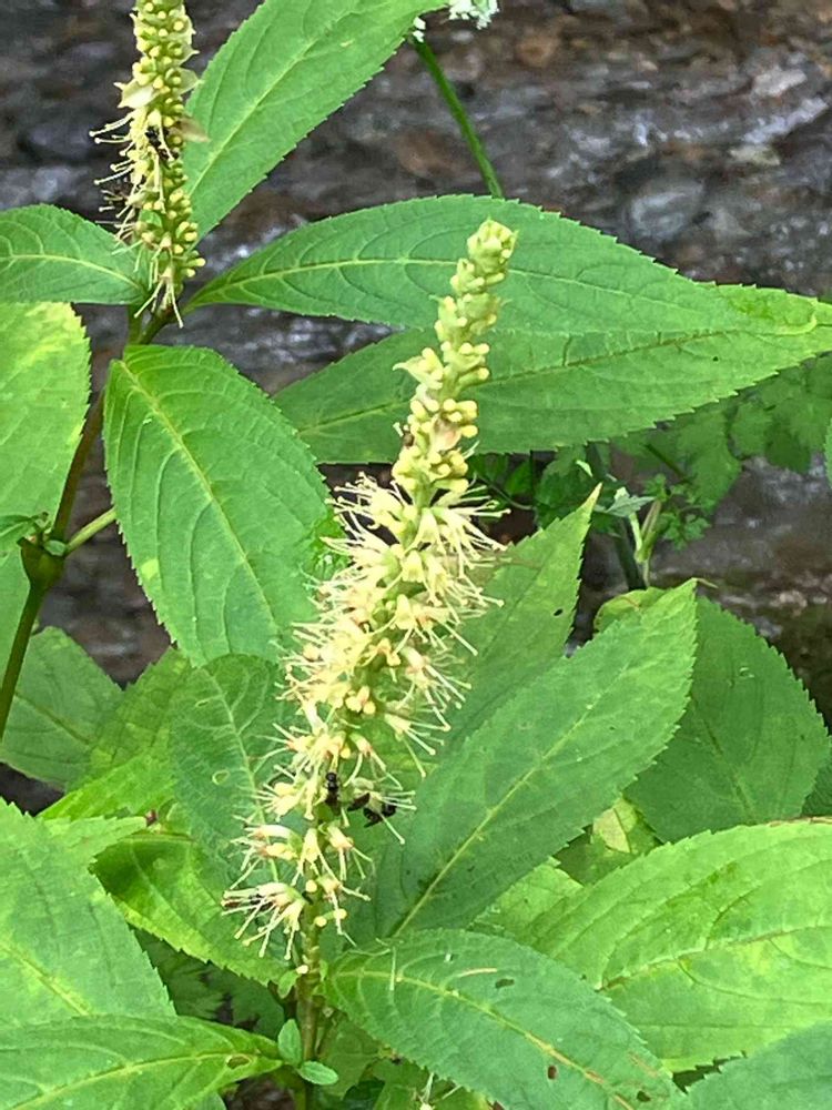 テンニンソウは、鹿が食べない植物だそうで意外と多く見られました。花穂は10㎝ぐらいで、クリーム色の花筒から飛び出た長い蕊が特徴的です。天人草という名前の由来は不明だそうです。9/17栃木県