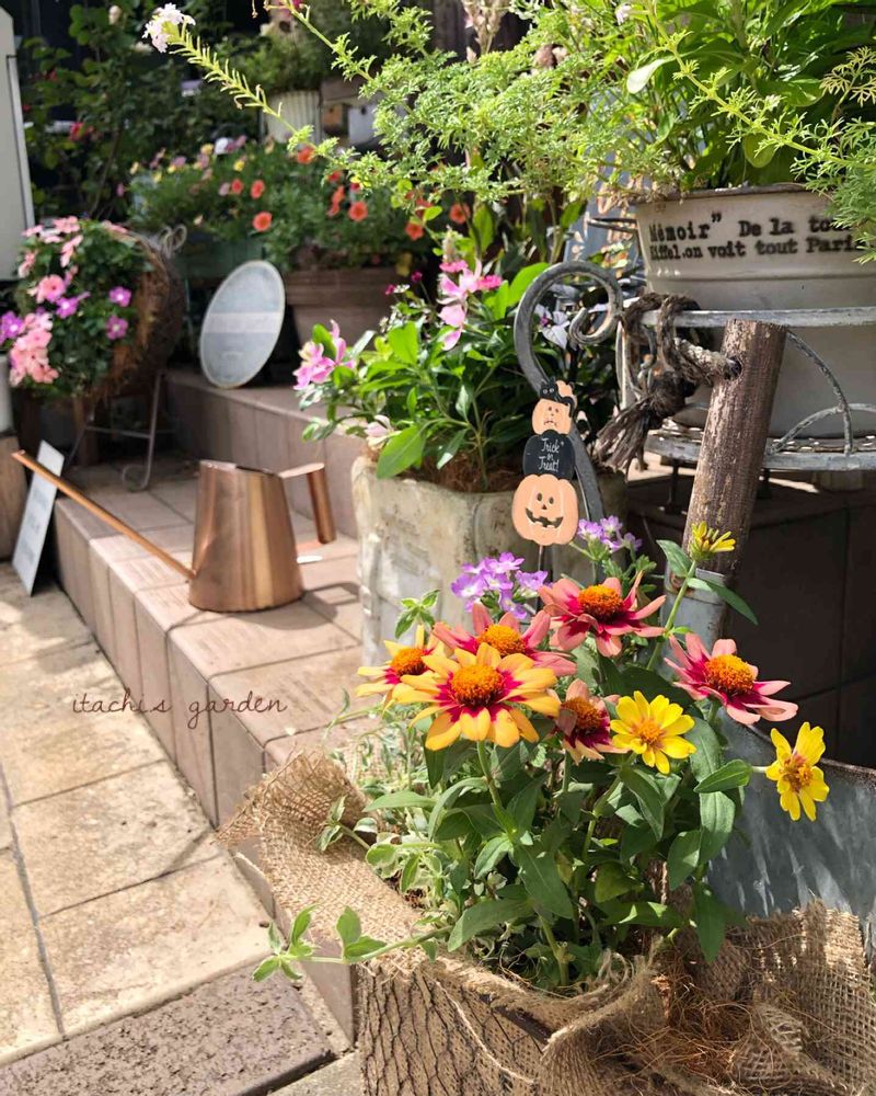 ジニア、トレニア、バーベナの寄せ植え🧡