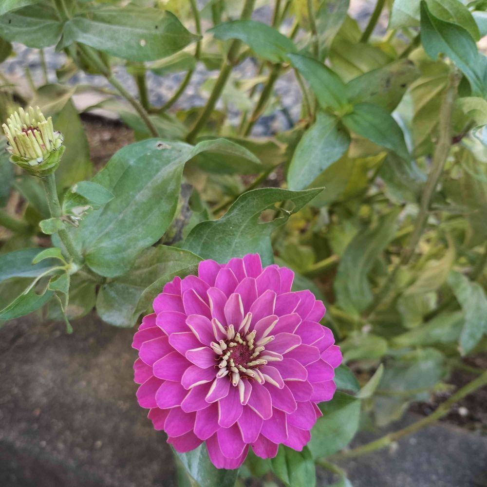 昨日の夕方見たら葉っぱが食べられていてジニアちゃんの花に幼虫がついていました😯💦調べたら多分ヨトウムシだと思うので今朝オルトランを
