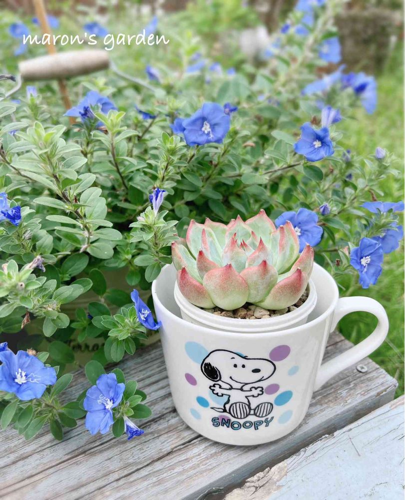 かわいいスヌさんのカップに 丸葉シモヤマコロラータ かわいい子だね💓💞 お色が(ღ*ˇ ˇ*)。o♡ᔆᵘᵗᵉᵏⁱ♡