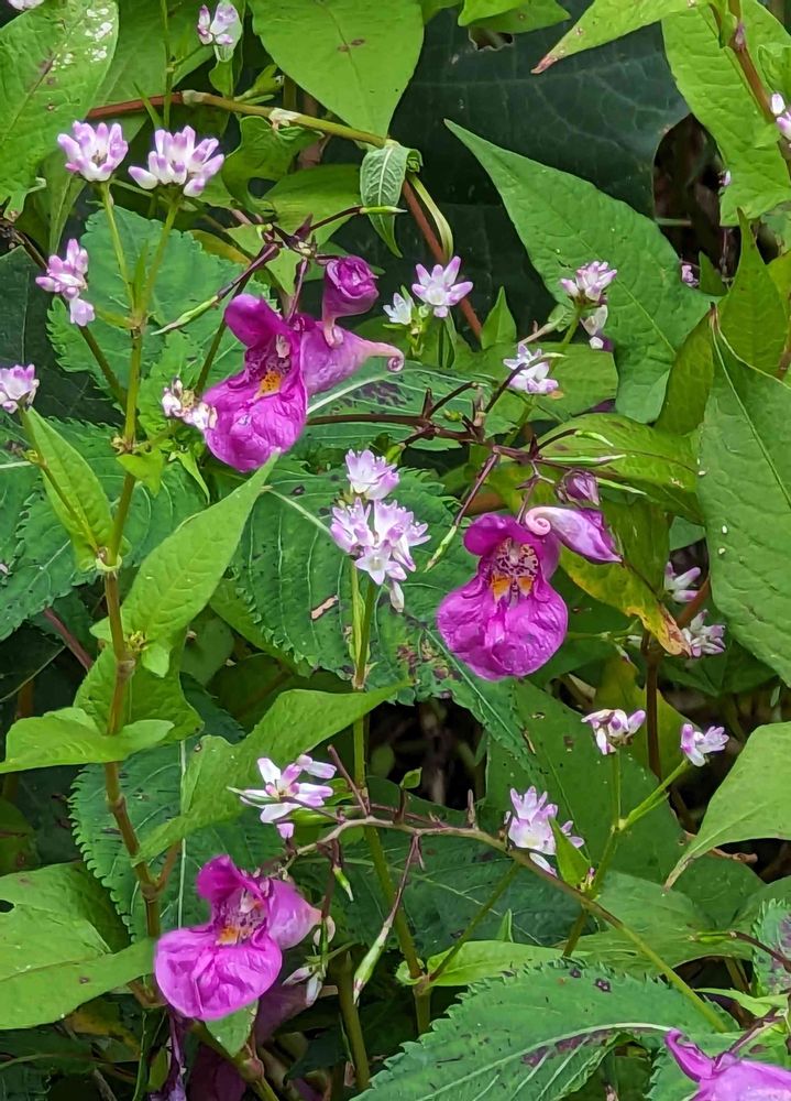 山道を走っているとなにかしらピンクの群生が…停まって近づくとツリフネソウとミゾソバが一緒に咲いていました💕