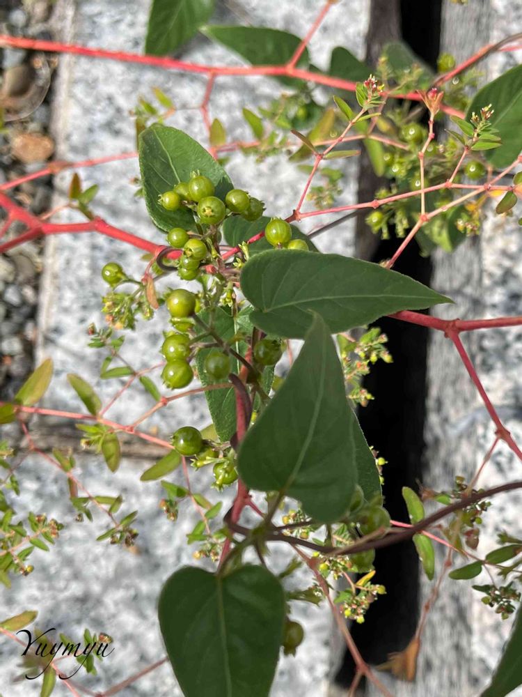 淡紅色のオオニシキソウに絡みつくヘクソカズラ🌿🟢💚