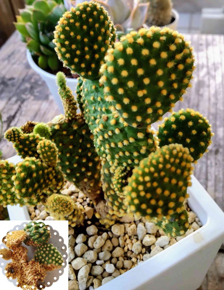 茶色のカサカサ状態でもうダメかなと思いながら水をあげたら....凄い‼️復活しました🤭サボテン強し!🌵👏👏👏